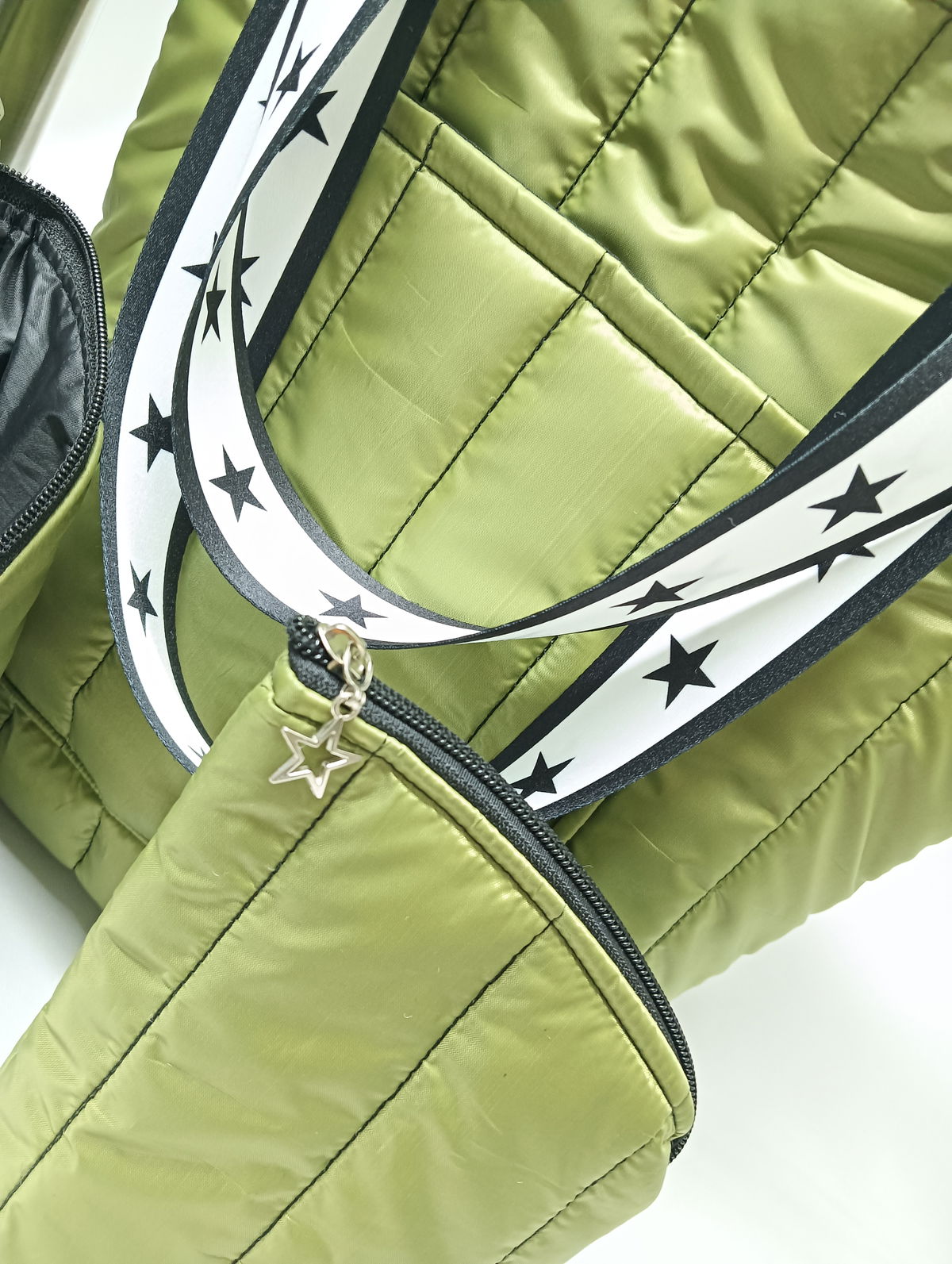Bolso Matero en tela puffer con bolsillo exterior forrado en silver impermeable con bolsillo y sujeta termo.