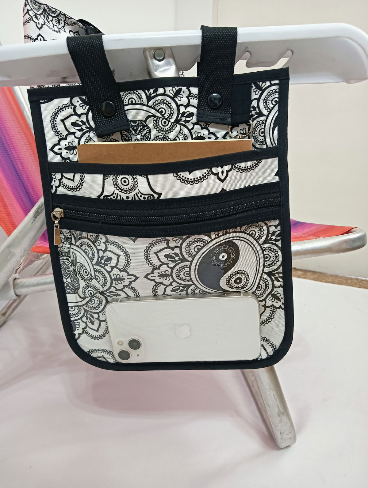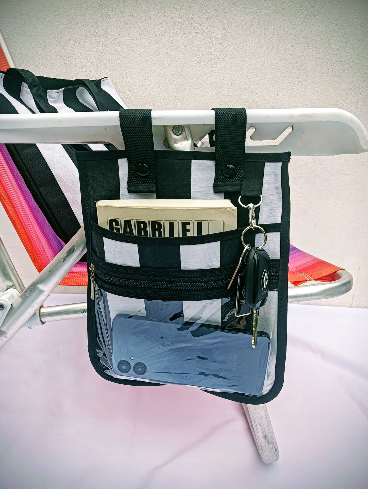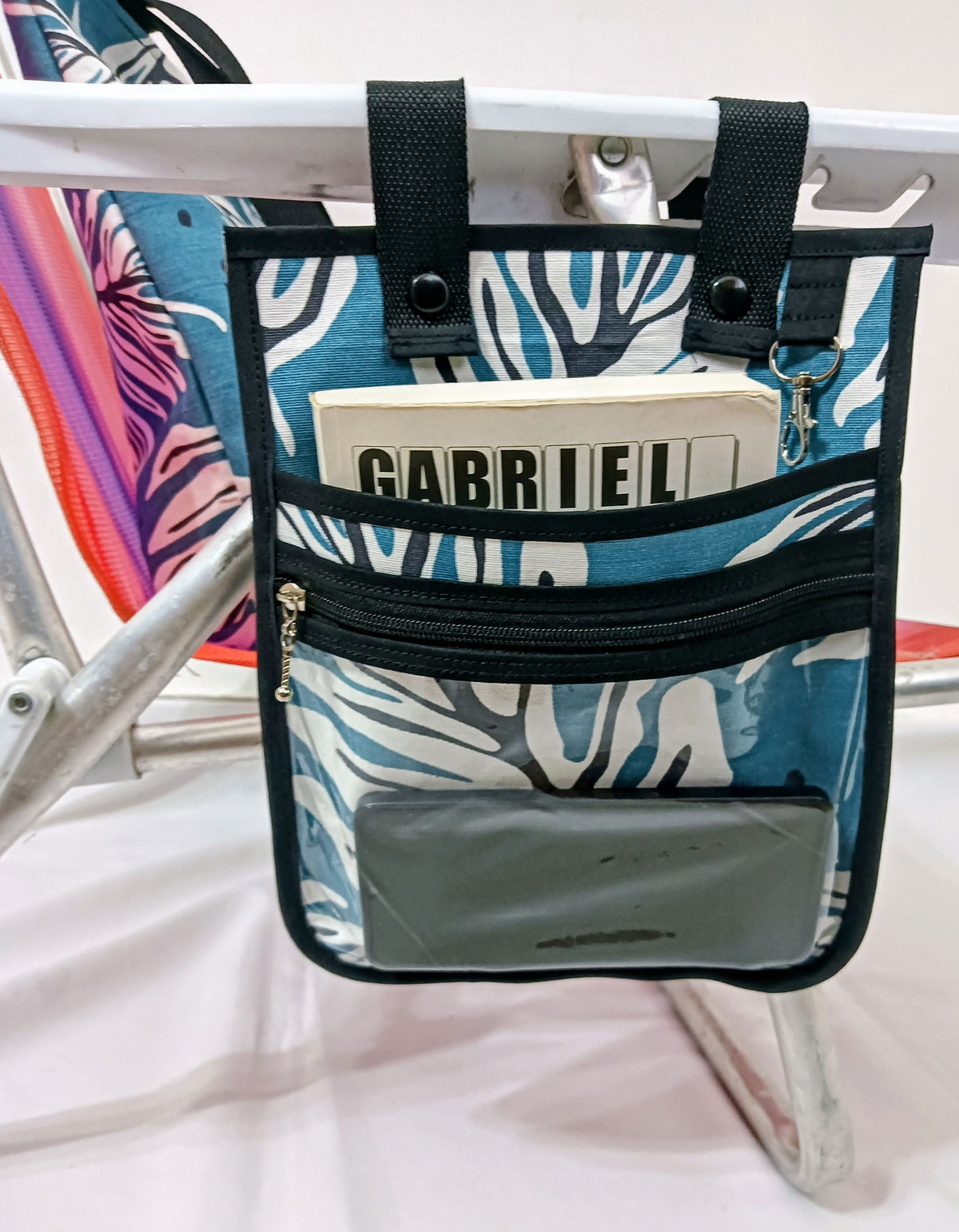 Práctico Organizador para reposera de lona de algodón y polyester, con dos bolsillos para guardar billetera, llaves, celular etc.