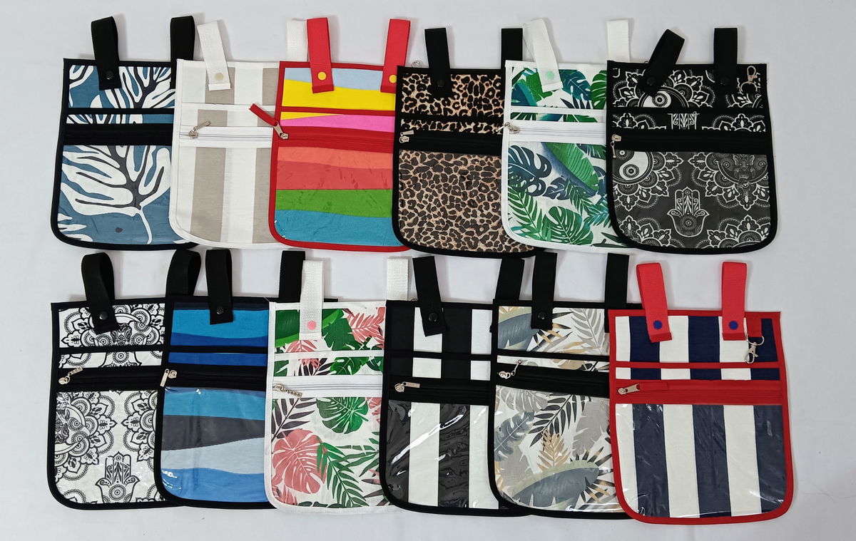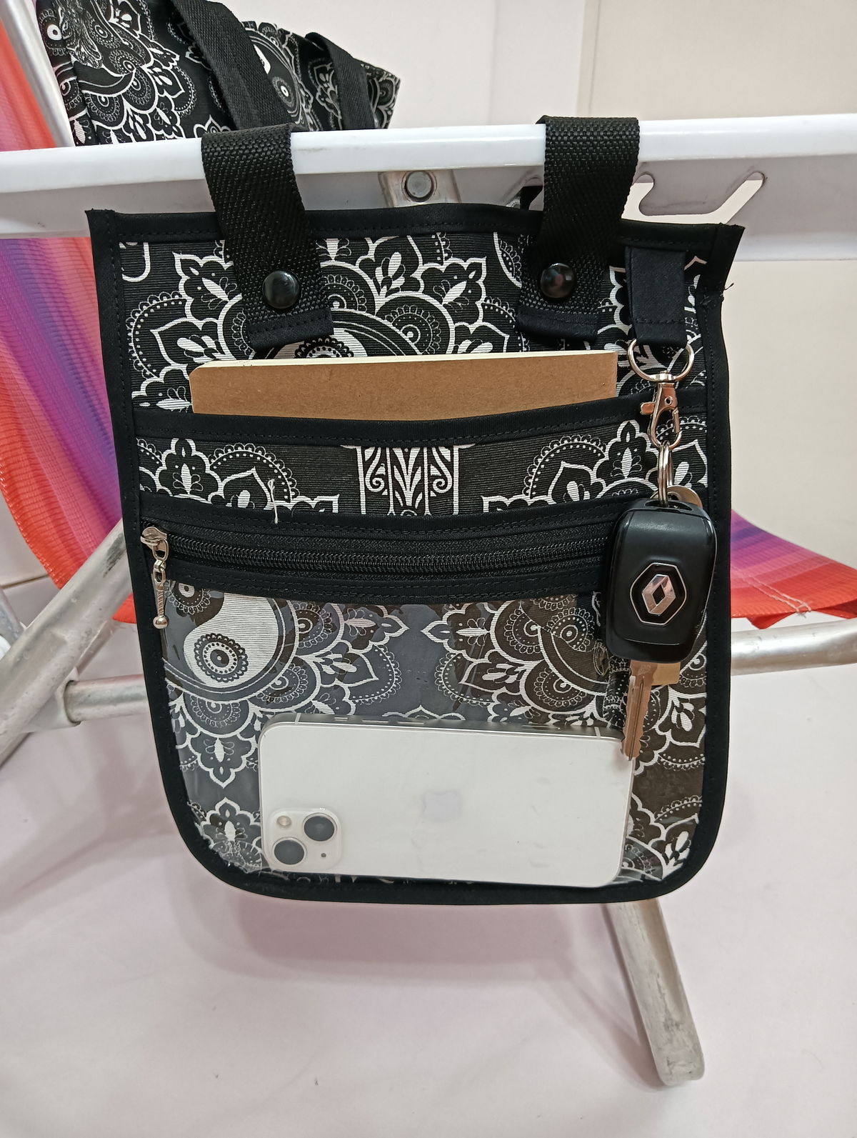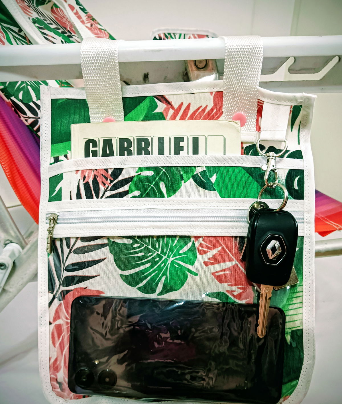 Práctico Organizador para reposera de lona de algodón y polyester, con dos bolsillos para guardar billetera, llaves, celular etc.