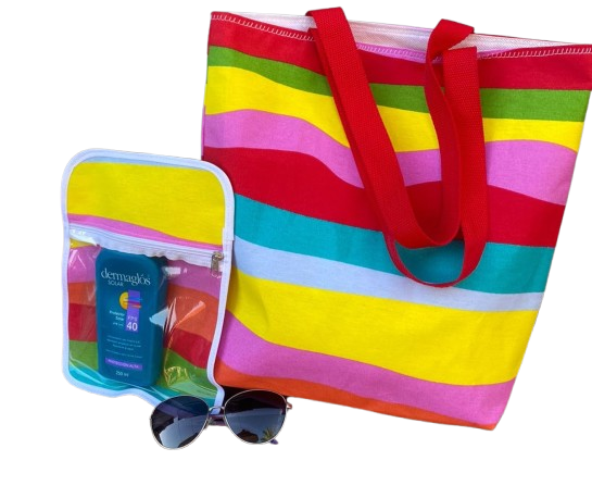 Bolso playero mediano onda multicolor + neceser transparente