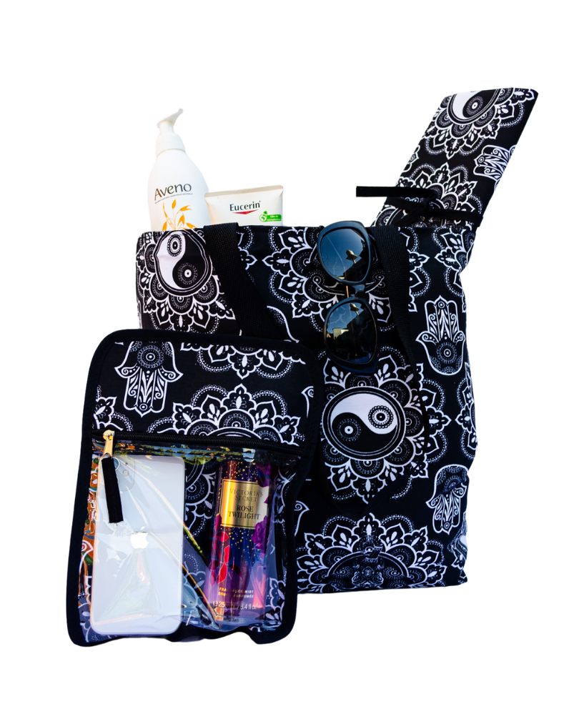 Kit Playero Ying Yang negro: Bolso mediano + lona + neceser transparente