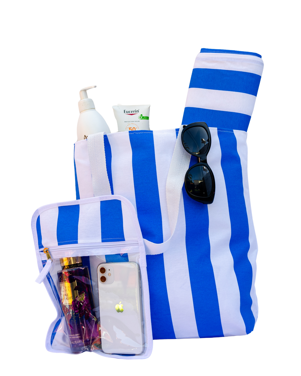 Kit Playero Rayado: Bolso mediano + lona + neceser transparente