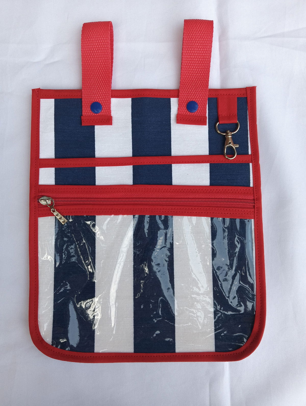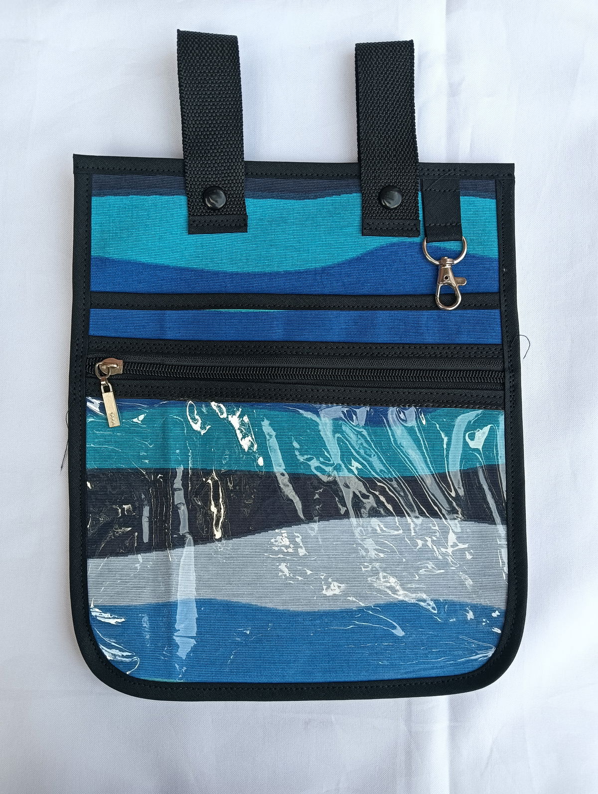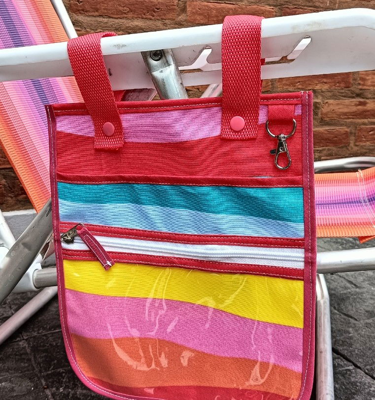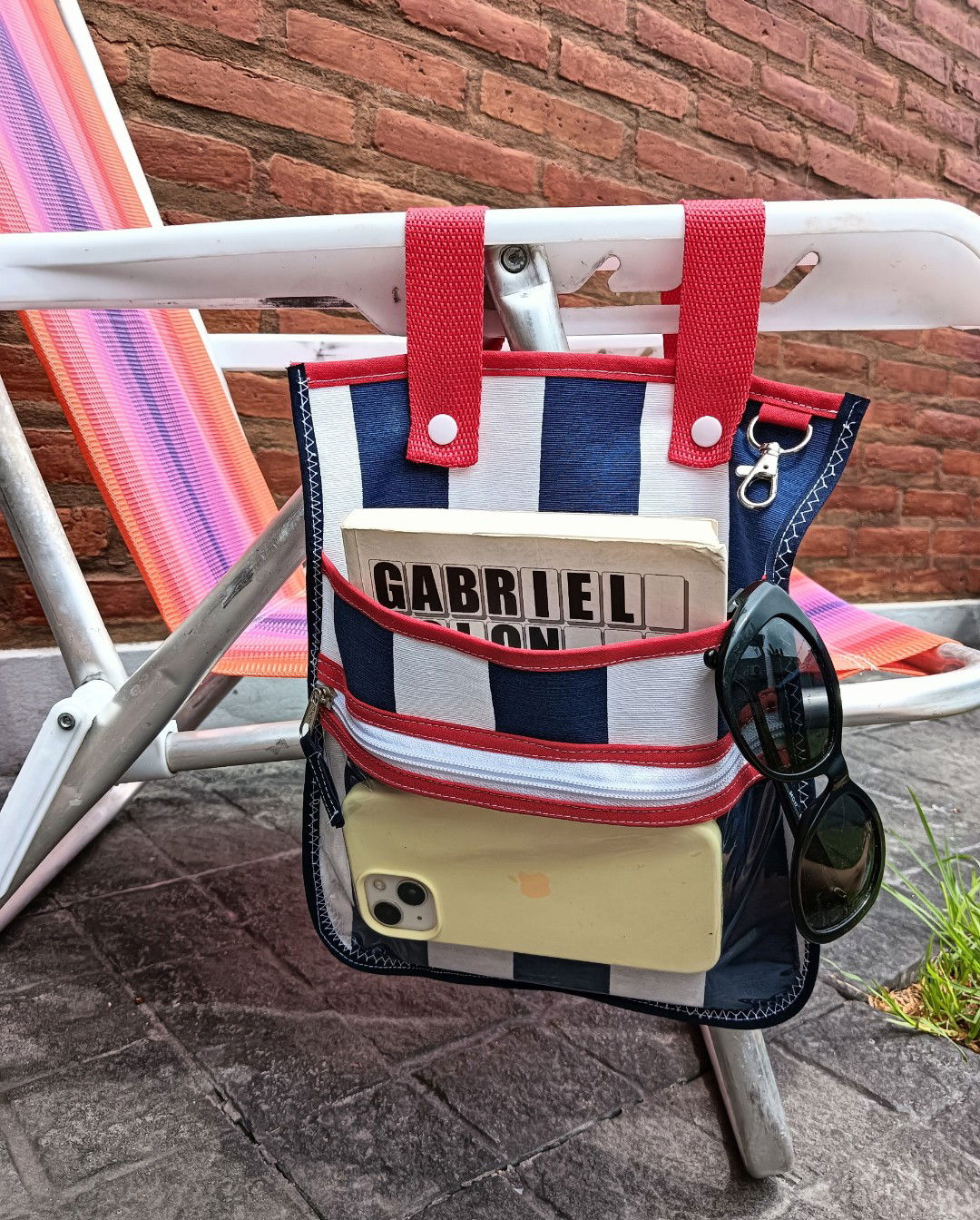 Práctico Organizador para reposera de lona de algodón y polyester, con dos bolsillos para guardar billetera, llaves, celular etc.