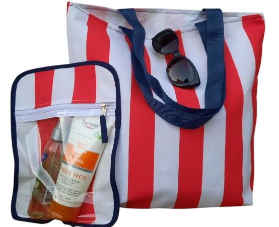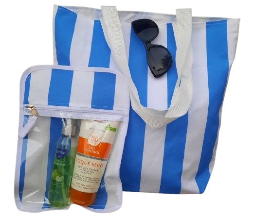 Bolso Playero mediano + neceser transparente + lona