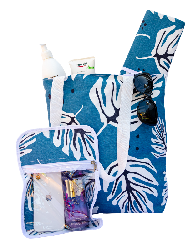 Kit Playero Palmera Bolso mediano + lona + neceser transparente